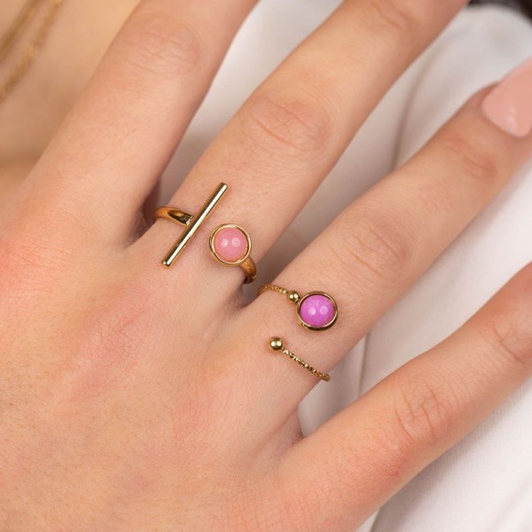 Anello orbita in acciaio inossidabile placcato oro con pietra naturale. Misura regolabile, prodotto privo di nickel e piombo.